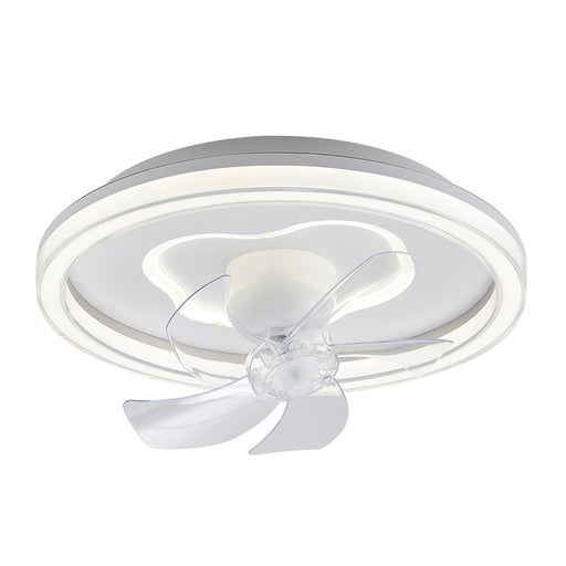 This stylish ceiling fan features a clean circular design with transparent blades and integrated tri-color LED lighting. Perfect for compact or mod...