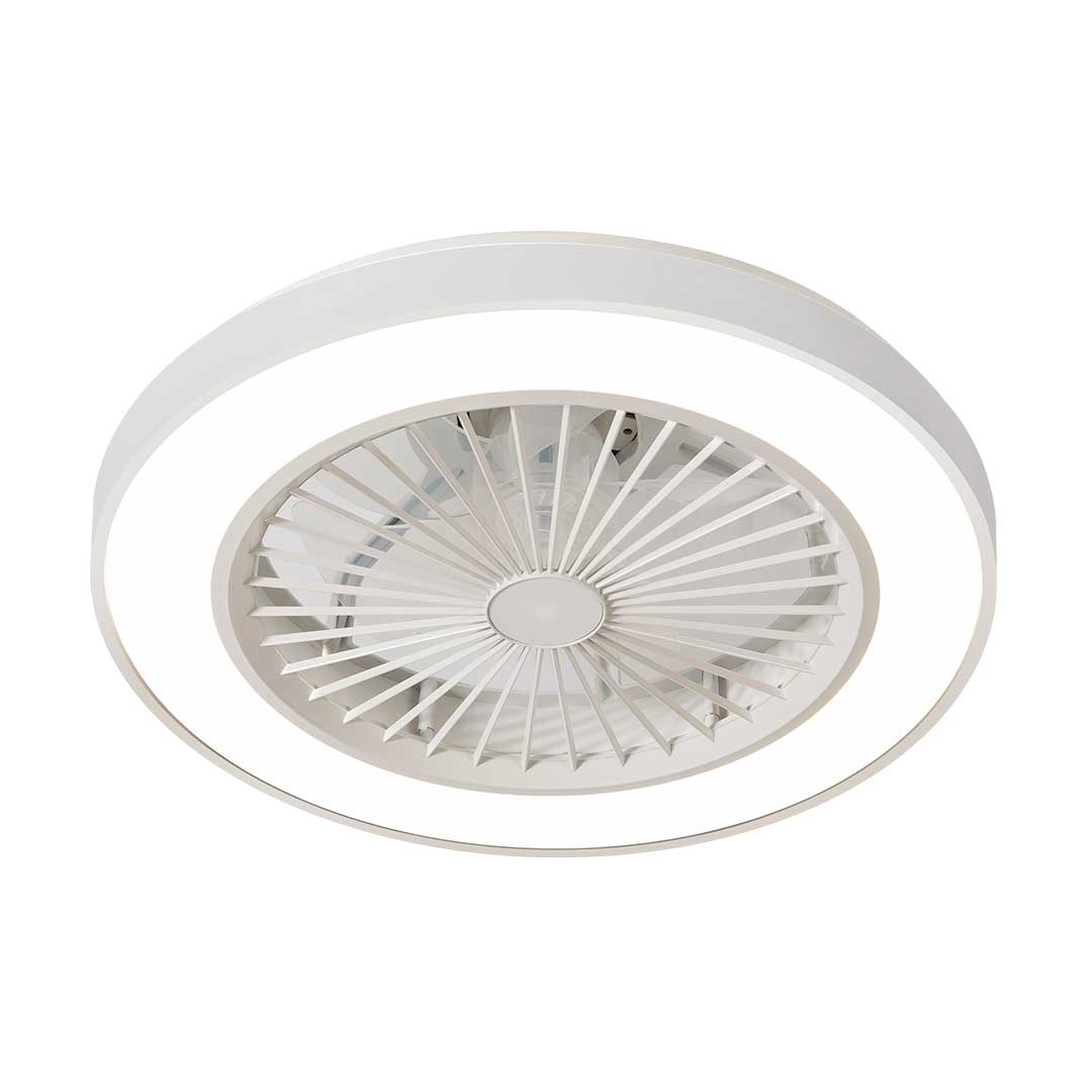 This white LED ceiling fixture with integrated fan offers a sleek, modern design for stylish interiors. It delivers reliable lighting with three adjustable color temperatures (6500K, 4000K, 2700K) while the built-in 12W fan ensures consistent airflow. Perfect for bedrooms, lounges, or office spaces, this dual-function unit runs efficiently on low voltage and is ideal for compact spaces where both lighting and ventilation are needed. The clean white frame complements light-colored ceilings, offering a neat and polished look.
