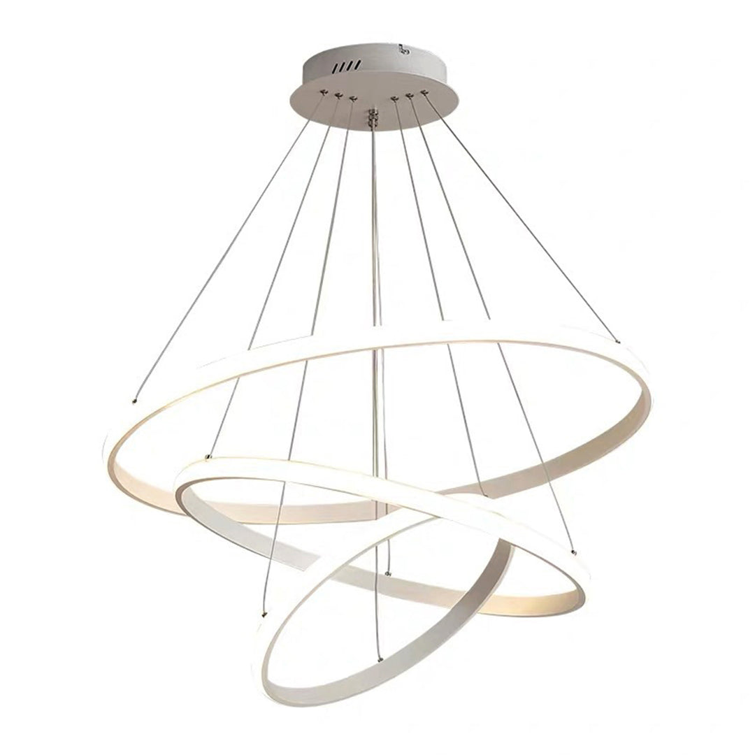 Make a bold impression with this modern spiral-ring pendant light in a clean white finish. Built with a high-power 75W LED and selectable color temperatures (cool, neutral, and warm white), this decorative fixture delivers both beauty and brightness. Ideal for high ceilings, it features a dynamic spiral design crafted from durable aluminum and silica—making it a perfect centrepiece for homes, hotels, or stylish workspaces.
