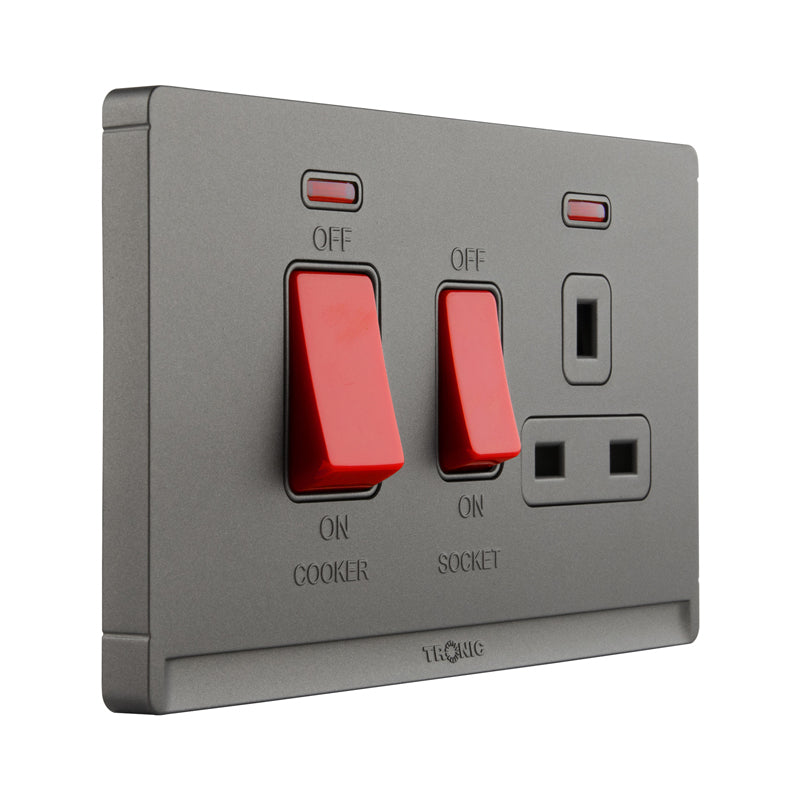 This premium grey cooker switch features a sleek modern design, smooth edges, and a screwless finish for a clean, contemporary look. Built with a durable metal plate for a secure fit and a high-quality polycarbonate casing, it offers both strength and long-lasting performance. Cooker switches provide a quick and convenient way to turn off your appliance in case of an emergency, making them an essential safety feature in any kitchen. Positioned within easy reach, they ensure fast and reliable control without serving as an isolator.
