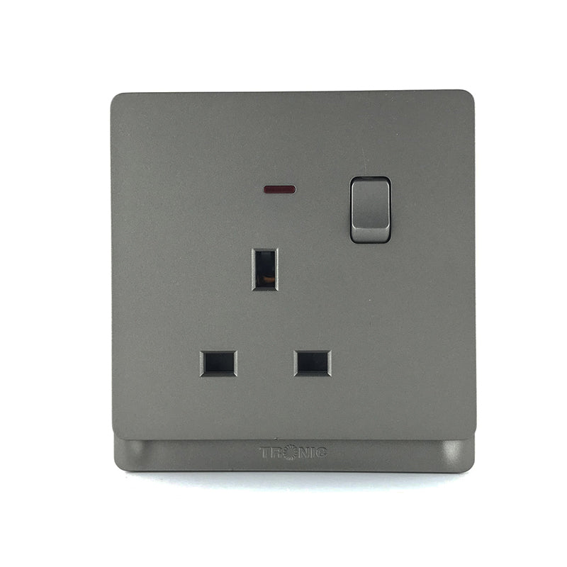 13A Single Socket with Switch & Neon Indicator – Grey