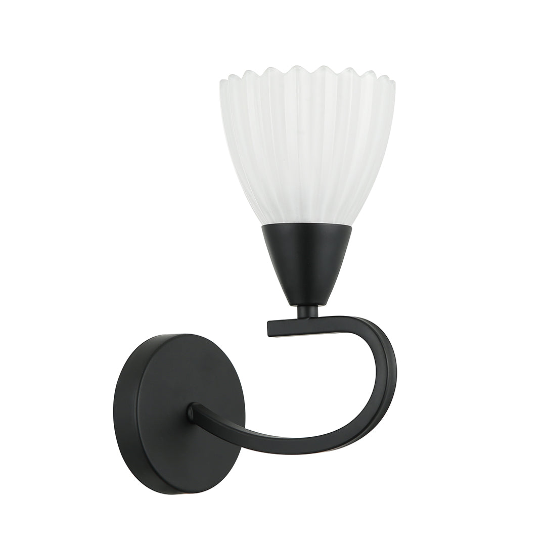 Black Wall Lamp with Frosted Shade and Curved Arm Design