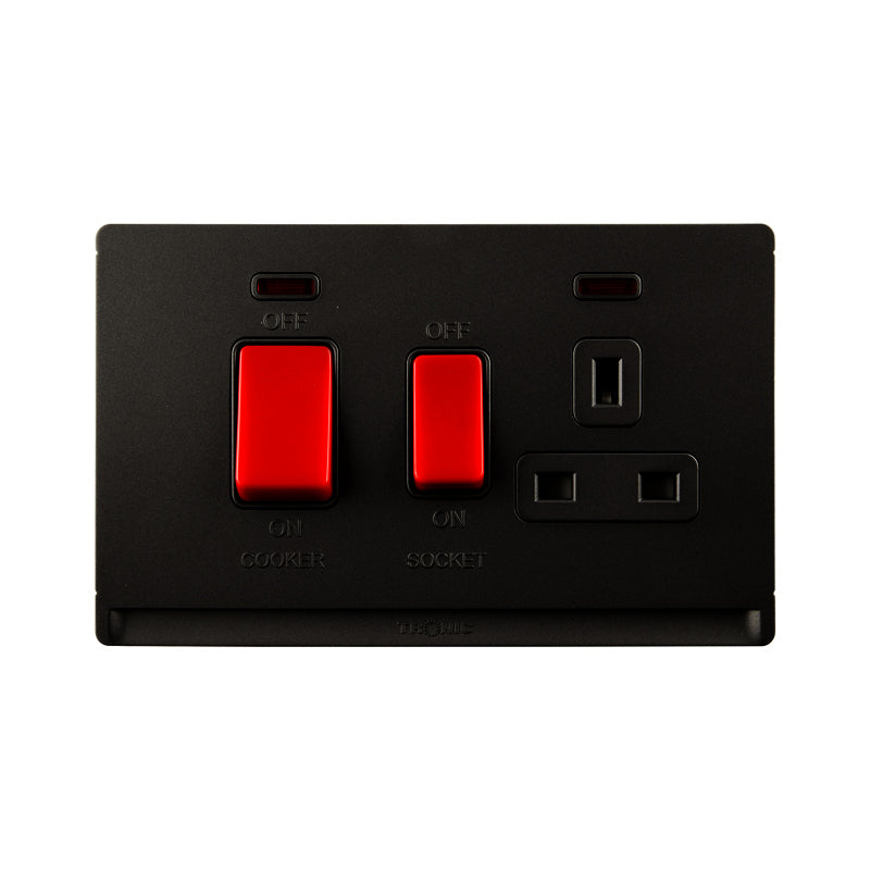Cooker Control Unit with 13A Socket & Neon Indicator, Dual Pole - Black