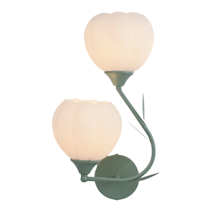 Double Tulip Wall Light – Frosted Shades with Leaf Arm