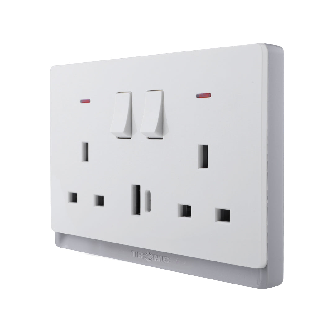 Double Socket with USB-A & Type-C – Ivory Finish